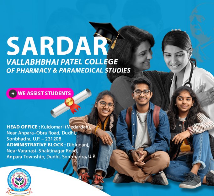 Sardar Vallabh Bhai Patel College of Pharmacy & Paramedical Studies is a leading institution dedicated to delivering career-focused education in Pharmacy and Paramedical Sciences. Located in Kuldomari (Medardah), Near Anpara – Obra Road, District Sonbhadra, our college operates with the vision to uplift rural and urban students by equipping them with industry-relevant skills and values.